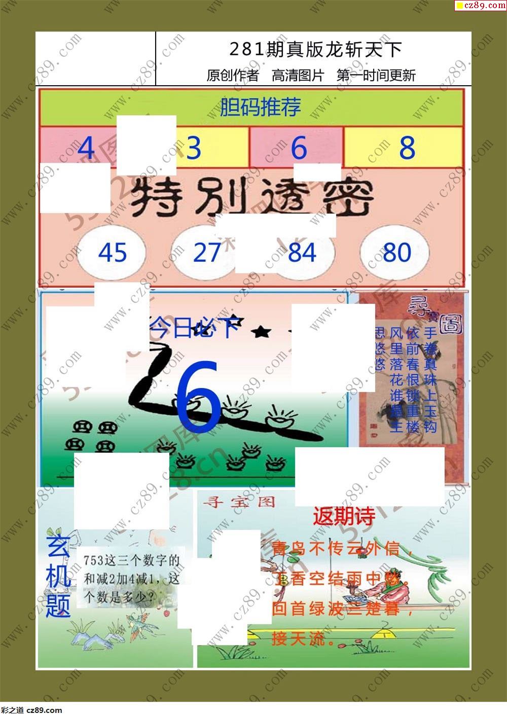 龙斩天下25年281期福彩3d图迷