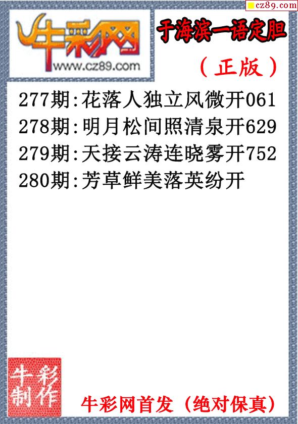> 25年280期于海滨一语定胆(原创正版)