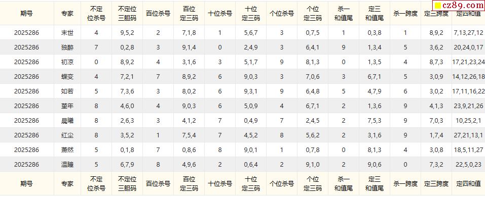 25年286期彩宝贝专家福彩3D杀号定码图表